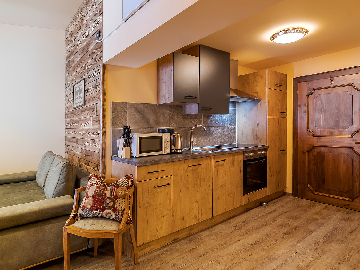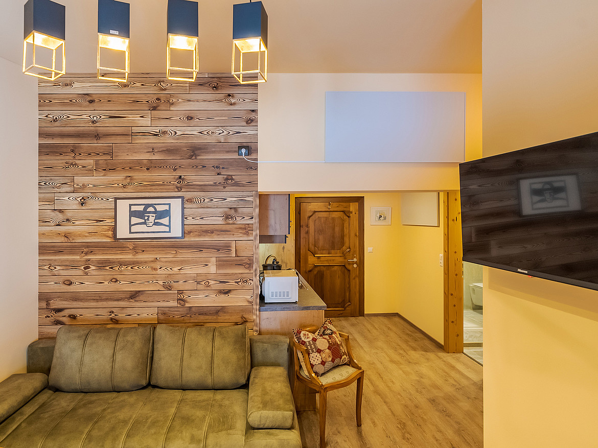 Das Appartement „Gold“ bietet Ihnen 1 Schlafzimmer mit Boxspringbetten, ein Wohn- und Essbereich mit einem Schlafsofa, voll ausgestattete Küchenzeile, Flatscreen-TV, Badezimmer mit Dusche/WC, Waschbecken. Das WLAN ist frei zu benützen. Als weiteres Highlight genießen Sie von Ihrem Balkon aus eine wunderschöne Aussicht auf die Berge in absolut ruhiger Lage.